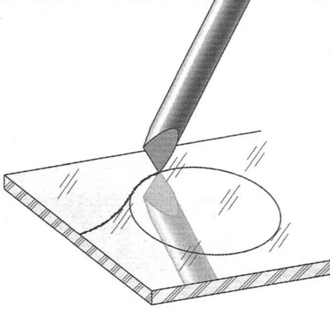 This unusual method of forming holes in the glass not only allows you to do without a glass cutter, but provides the ability to shaped cut-outs and, thus, the details of sheet of different thicknesses.