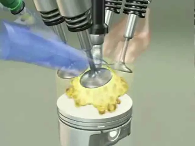 Once the fuel lights up, a blast – it dramatically increases in volume, causing the piston to move downward. Valves in the cycle of operation of the engine, as in the previous, are in the closed state.