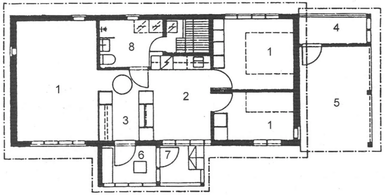 Living room oriented to the South to make the best use of thermal energy from the sun. It allows to reduce heating costs. Ancillary and domestic facilities, including the sauna (bath), bathroom etc., placed on a cold, Northern side. When designing the Windows with triple glazing you also have to consider that the Windows on the South side lets in more heat (Fig. 6).