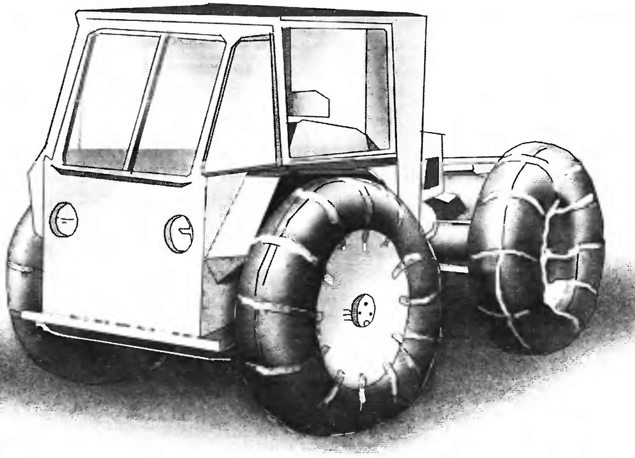 The front and rear axles of the vehicle is homemade. Bearing housing, differential and shortened axle from the car “Moskvich”. The differential housing closed metal housing. The driveshaft fit with the bushing (hot landing), fixed on the elements of the axle plug lap joint.