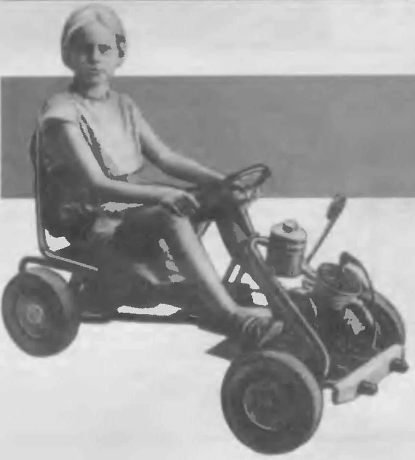 To begin movement it is necessary to open the fuel tap, take the car and depress the clutch pedal. Then the assistant accelerates the car is under power not only the Pope, but the 7 — 8 year old child. Now it is necessary to include the clutch, press the gas pedal… and went. Speed depending on the skill and experience of the driver is installed a limiting device. To stop the car, you need to remove your foot from the gas pedal, while the throttle completely block the access of gasoline to the carburetor and the engine will stall. Finally to stop the car by pulling the brake lever upwards. If you already have such a pedal car and you want to refit it, we need to acquire engine D-6 or D-8, benzaken and cable budenovskoy shell, from which you can make two wheel drive. Gas tank 1 liter of fuel is easy to make from any suitable metal or plastic containers.
