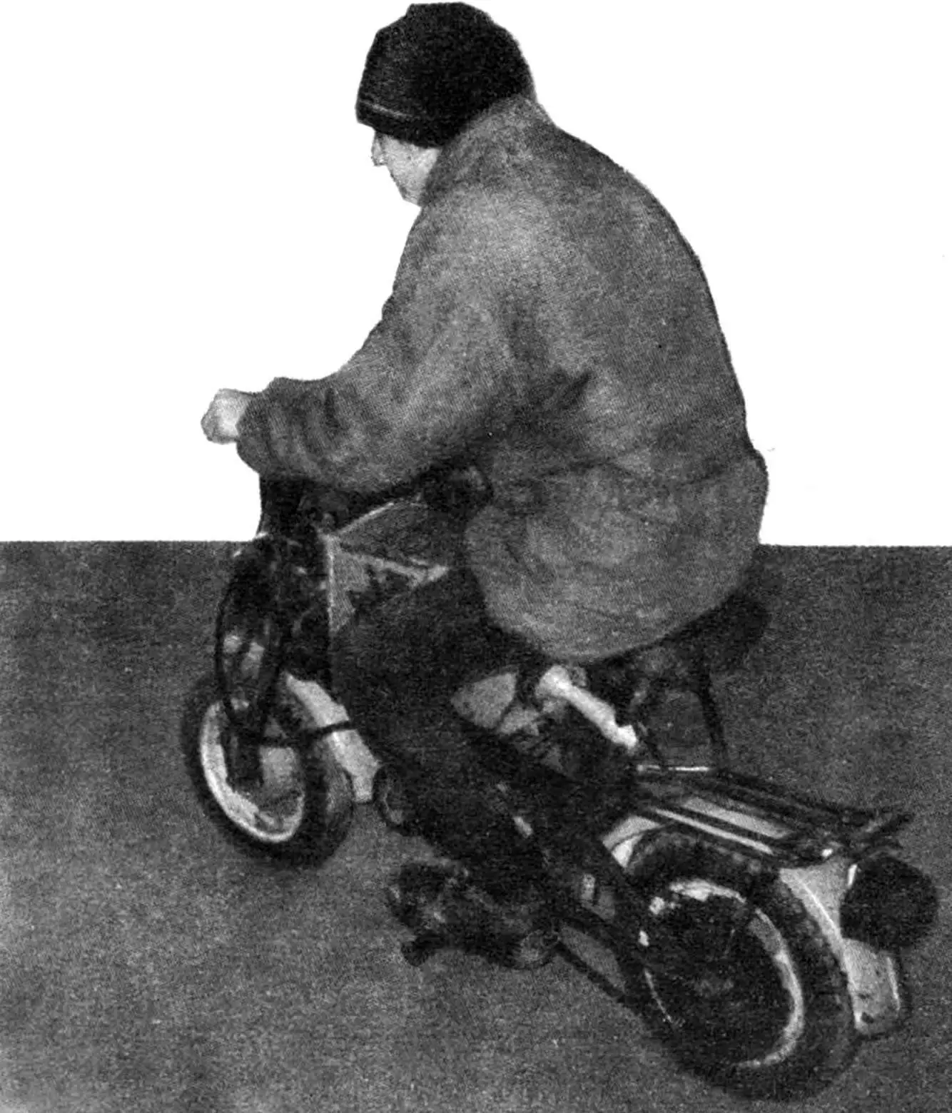 Road tests of the machine and its operation over two seasons have shown that such designs have a right to exist. The electric bike starts smoothly and reaches speeds of up to 30…35 km/h, climbs hills without much difficulty and rolls down them briskly. The battery capacity is sufficient for more than three hours of travel. After which, of course, it has to be recharged, and this operation is not pleasant, as the battery is quite heavy, and I advise those who want to repeat our experiment to find a lighter power source.