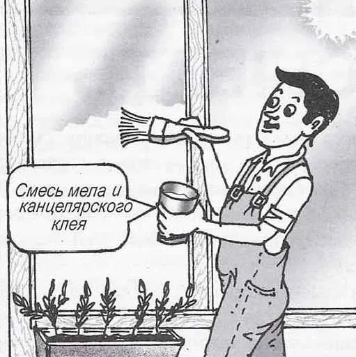Fencing located at the window the seedlings from direct sunlight or “curtain” of the glass will be without curtains, if you make frosted glass. It does not have to resort to abrasive.