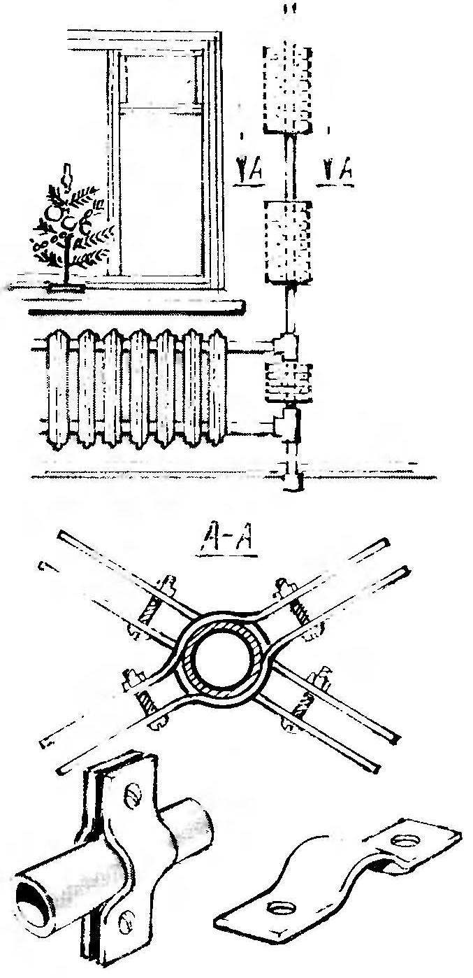 if you increase the intensity of the heating installation in free areas of heating pipes for additional plates-clamps made of heat conductive material (e.g., duralumin), as shown on the drawings. I. PICHUGIN, Orenburg