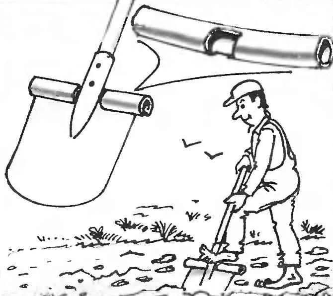 The soles of the feet when digging the ground, will not be so uncomfortable if the shoulders of the shovel to pull the trim rubber or plastic garden hose.